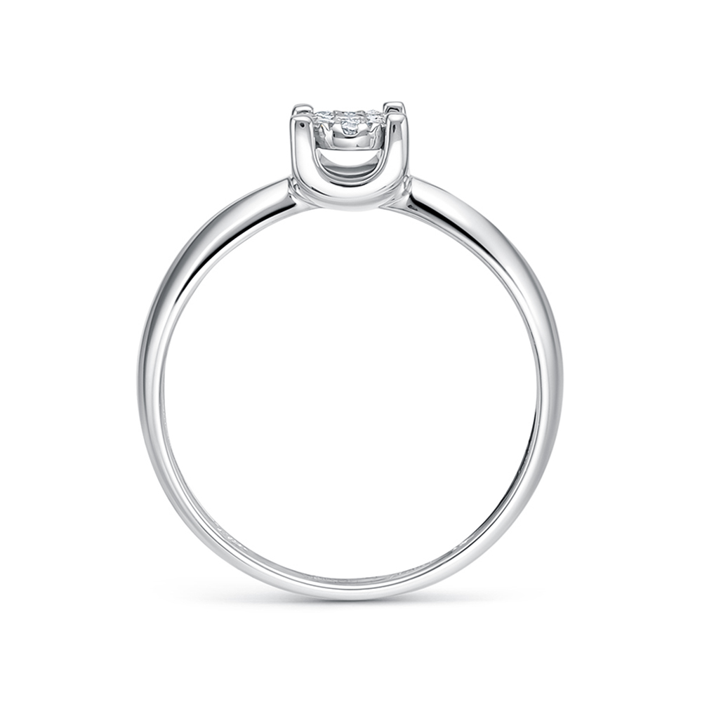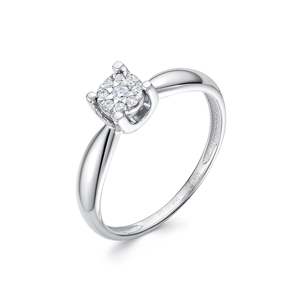 Кольцо классического дизайна из белого золота 585 пробы декорировано вставкой с сияющими бриллиантами. Изысканный блеск драгоценных камней в обрамлении благородного золота завораживает взгляд, и подчеркнет женственность и чувственность владелицы. Приобретайте ювелирное украшение для создания идеального образа по выгодной цене в магазинах Мир Золота.