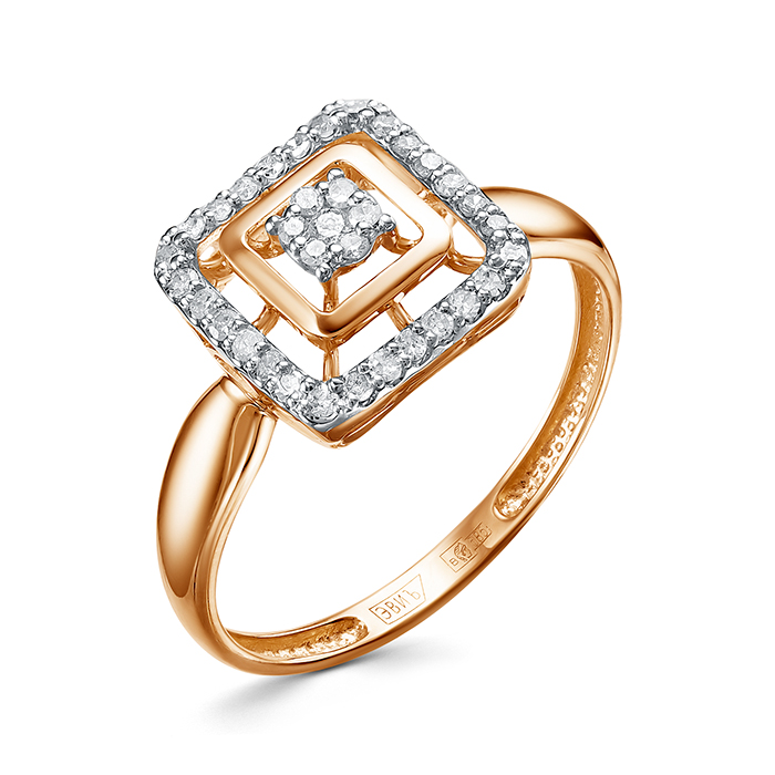 Кольцо современного дизайна выполнено из красного золота 585 пробы с натуральными бриллиантами. Украшение с драгоценным сиянием камней в сочетании с глянцевым блеском золота смотрится стильно и элегантно, и подчеркнет утонченный вкус обладательницы. Приобретайте ювелирное украшение в подарок по выгодной цене в магазинах Мир Золота.