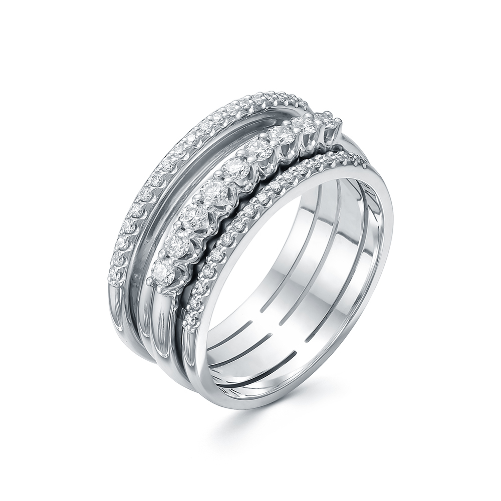 Великолепное кольцо из белого золота 595 пробы с дорожками ослепительных бриллиантов роскошно смотрится, и не останется незамеченным. Благородное золото выгодно подчеркивает неповторимую красоту драгоценных камней. Украшение станет эффектным подарком, и займет достойное место в коллекции драгоценностей владелицы. Приобретайте кольцо по привлекательной цене в магазинах Мир Золота.