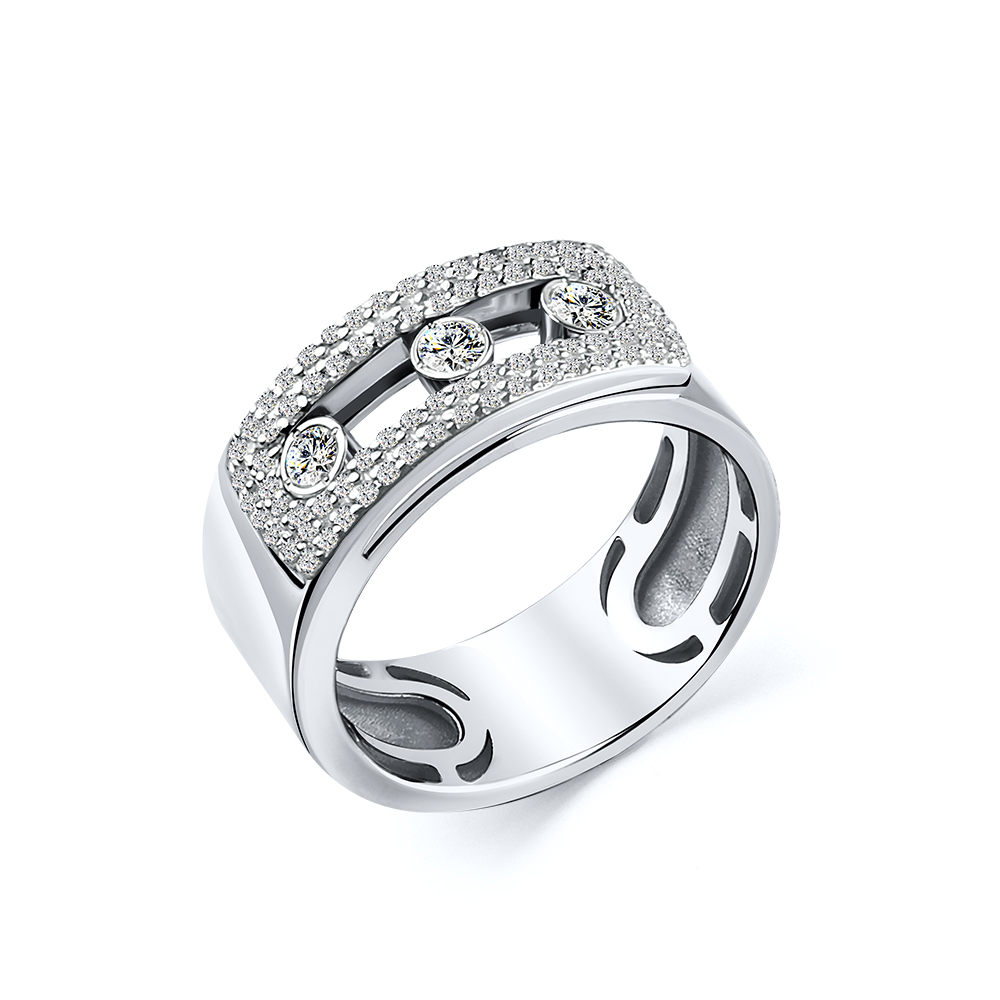 Великолепное кольцо из белого золота 585 пробы, усыпанное драгоценными бриллиантами, покоряет своим роскошным блеском, и займет достойное место в ювелирной коллекции владелицы. Изысканное сочетание благородного золота и россыпи сверкающих камней позволит создать незабываемый образ, и подчеркнет безупречный вкус владелицы. Приобретайте кольцо в подарок по выгодным ценам в магазинах Мир Золота.