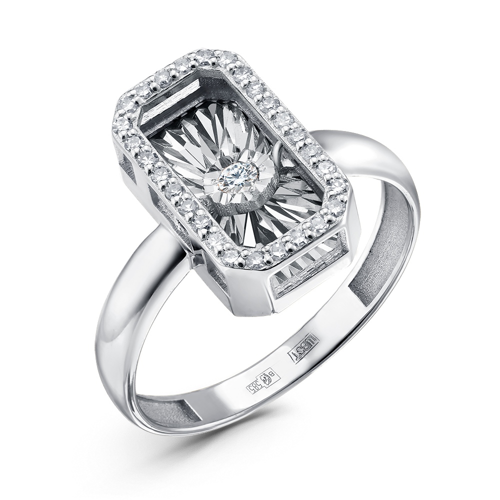 Эффектное кольцо из белого золота 585 пробы с драгоценными бриллиантами понравится поклонницам крупных ювелирных украшений. «Танцующий» бриллиант с подвижным креплением, подчеркнутый блеском алмазной грани, покоряет своим завораживающим сиянием, и, непременно, привлечет внимание окружающих. Приобретайте элегантное украшение в подарок по выгодным ценам в магазинах Мир Золота.