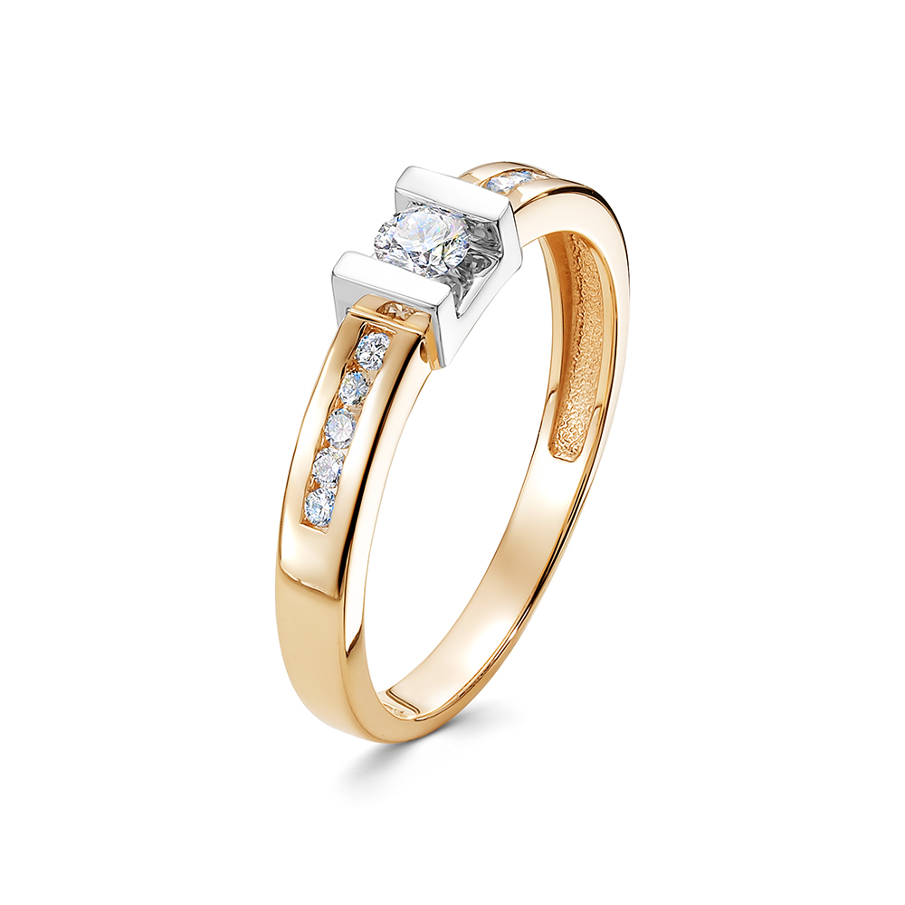 Тандем из строгих линий и геометрической гармонии воплотился в кольце из красного золота от ювелирного бренда Brilliant Style. Элегантная дорожка из драгоценных камней задает динамику, а инкрустированный бриллиант в белом золоте подчеркивает аристократизм и благородство. Купите роскошное кольцо по выгодной цене в магазинах Мир Золота.