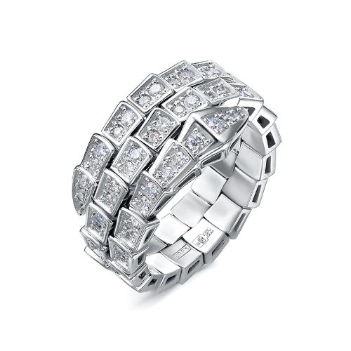 Идеальное дополнение стильного образа - оригинальное кольцо из белого золота высшей пробы в форме стилизованной змеи, усыпанное бриллиантами. Притягательные геометрические формы, блеск золота и сияние драгоценных бриллиантов - интересное дизайнерское решение для блестящего впечатления. Купите эффектное кольцо по выгодной цене в магазинах Мир Золота.