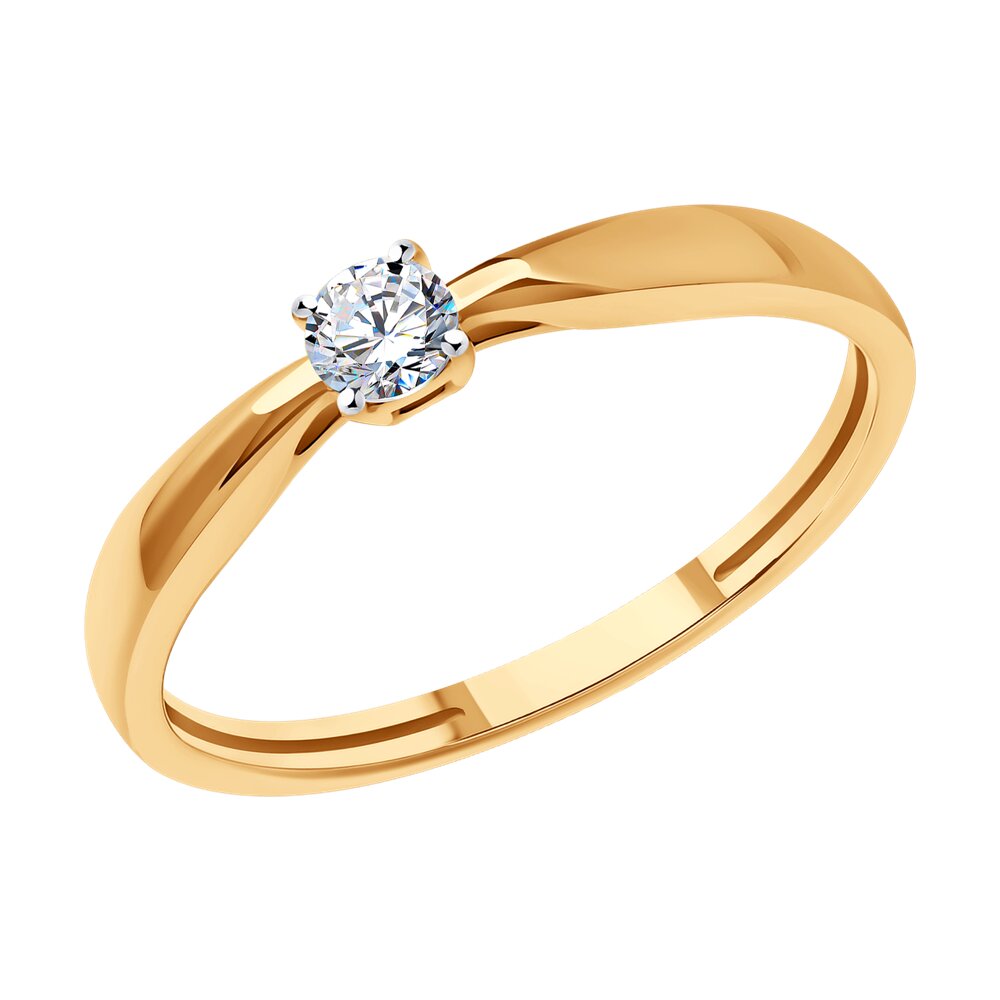 Красивое нежное кольцо из красного золота 585 пробы, декорированное изумительно сияющим бриллиантом, не оставит девушку равнодушной. Украшение классического дизайна идеально подойдет для предложения и помолвки, и сделает этот момент незабываемым в вашей жизни. Приобретайте кольцо в подарок по выгодным ценам в магазинах Мир Золота.