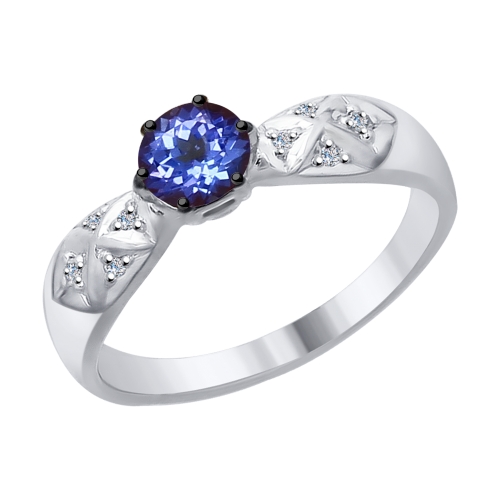 натуральным танзанитом удивительного оттенка и оригинальными вставками прозрачных бриллиантов. Драгоценные камни с переливчатыми гранями выигрышно подчеркнуты благородным обрамлением золота. Приобретайте кольцо по выгодным ценам в магазинах Мир Золота.