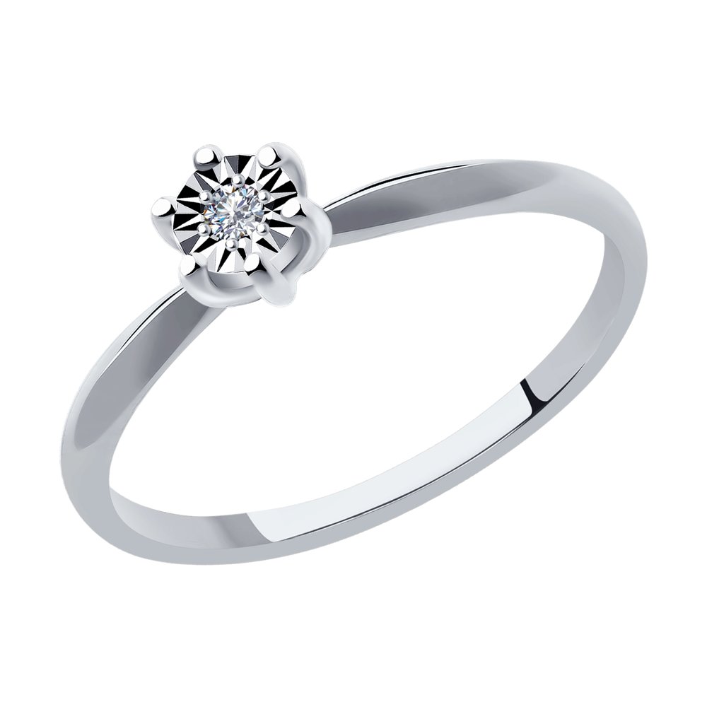 Классическое кольцо из белого золота 585 пробы с очаровательным бриллиантом. Утонченное кольцо с драгоценным бриллиантом идеально для прекрасного подарка. Украшение придаст ежедневному образу красоты и очарования, и будет гармонично сочетаться с другими аксессуарами. Приобретайте кольцо по выгодным ценам в магазинах Мир Золота.