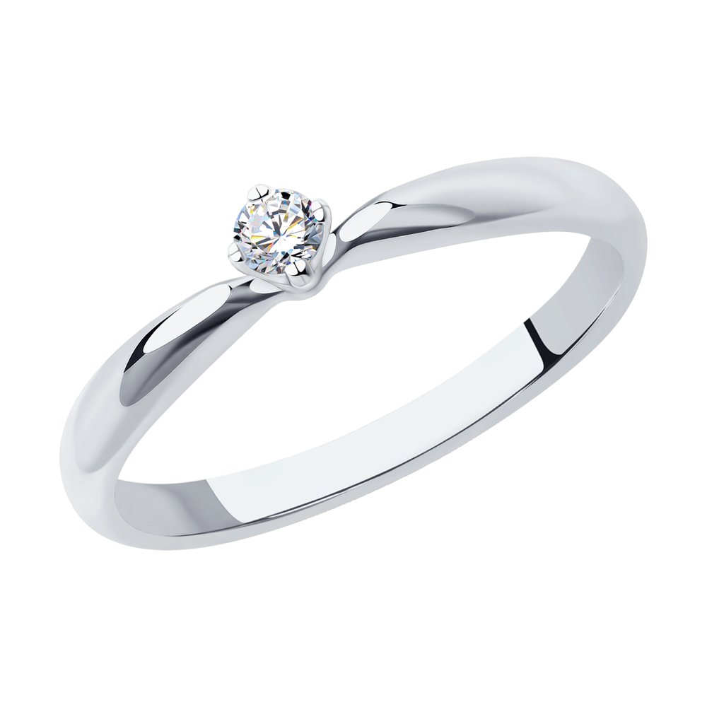Изящное кольцо из белого золота 585 пробы с драгоценным бриллиантом. Круглая классическая огранка камня позволяет раскрыть всю прелесть натурального бриллианта, а крапановая оправа создает ощущение легкости и воздушности образа. Кольцо станет эффектным и желанным подарком. Украшение при желании можно дополнить другими аксессуарами из золота. Приобретайте кольцо по выгодным ценам в магазинах Мир Золота.