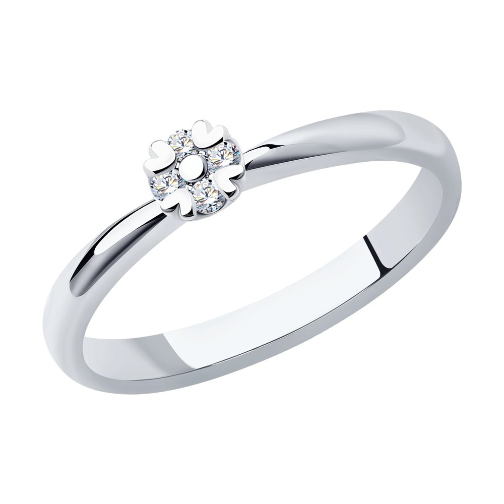 Очаровательное кольцо из белого золота 585 пробы с бриллиантами. Кольцо в романтичном стиле с драгоценными бриллиантами классической эталонной огранки будет идеальным подарком для особого случая и оставит незабываемые впечатления. Красивое универсальное кольцо будет уместно смотреться в любом образе. Приобретайте украшение по выгодным ценам в магазинах Мир Золота.