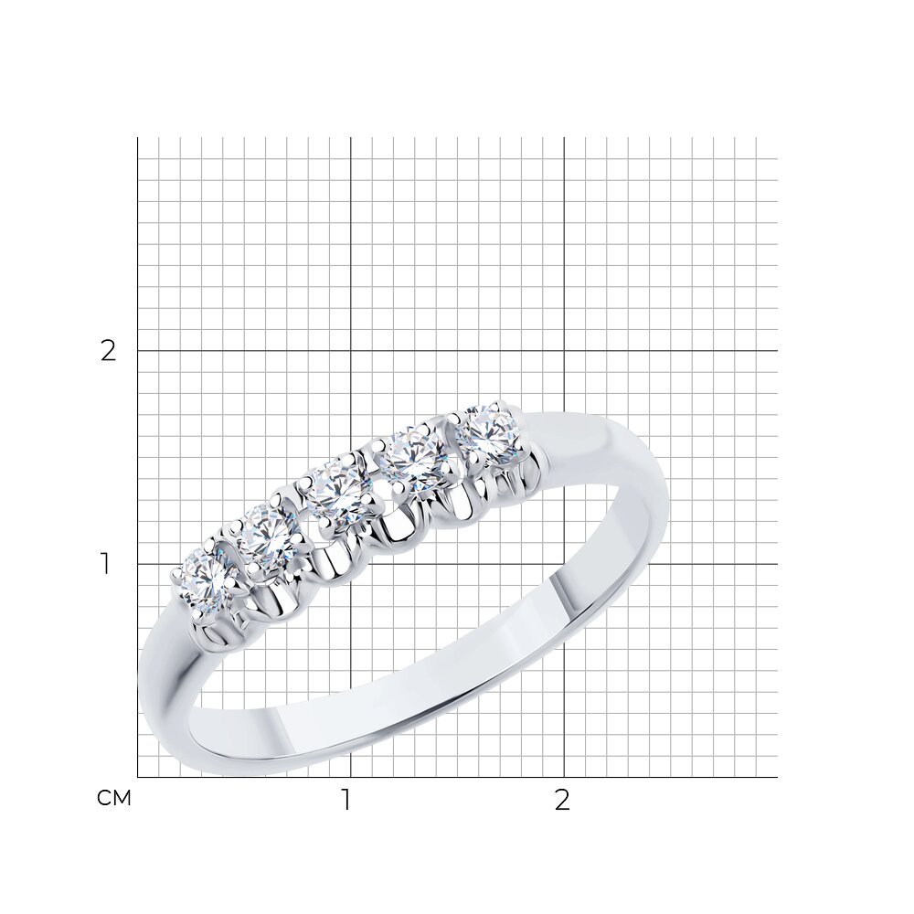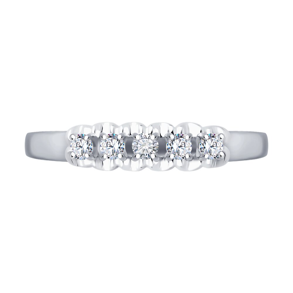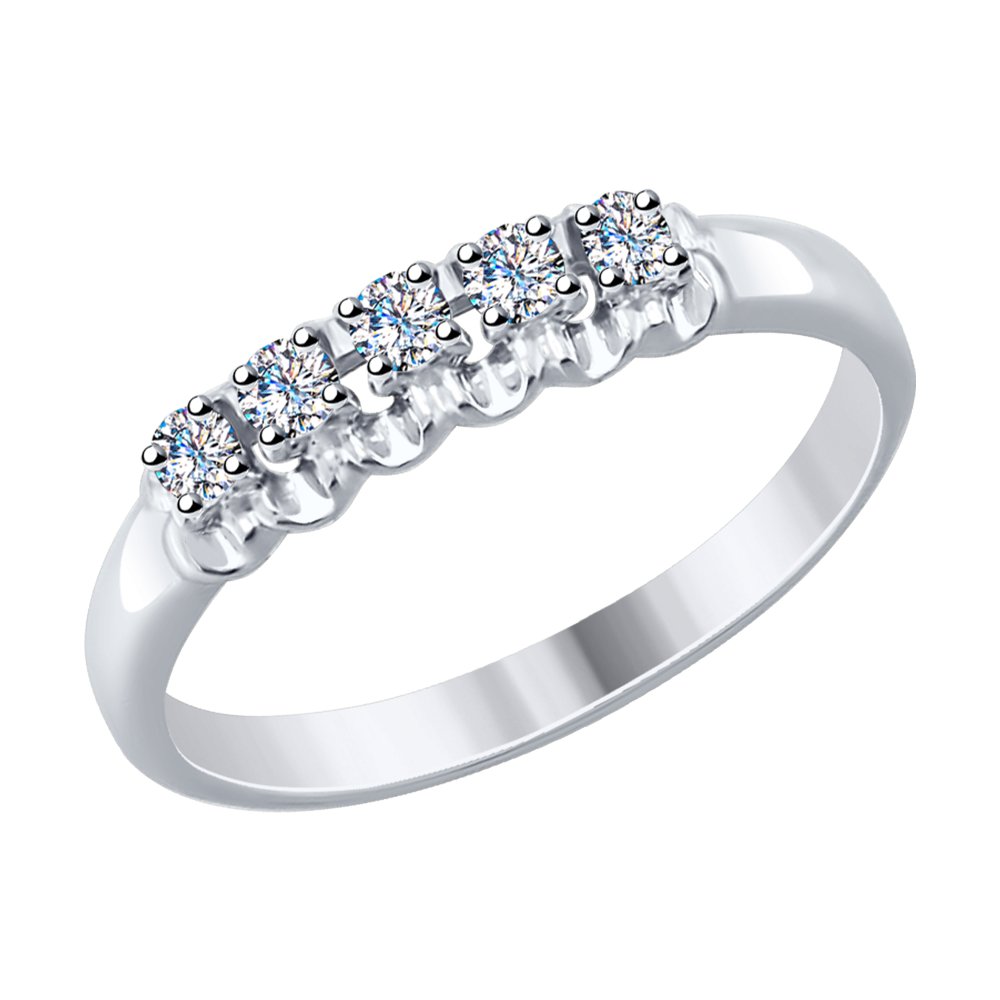 Великолепное кольцо из белого золота 585 пробы с бриллиантами. Кольцо украшает изящная дорожка из пяти прекрасных драгоценных бриллиантов. Эффектное сочетание белого золота и сверкающих благородных камней великолепно украсит и базовые, и яркие образы. Приобретайте чудесное украшение по выгодным ценам в магазинах Мир Золота.