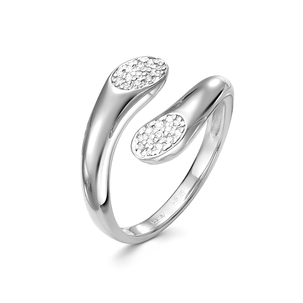 Оригинальное открытое кольцо из белого золота 585 пробы с притягательным сиянием бриллиантов. Необычное кольцо причудливого дизайна украшено 26 сверкающими прозрачными бриллиантами. Драгоценные камни с переливчатыми гранями выигрышно подчеркнуты благородным обрамлением золота. Приобретайте превосходное украшение для стильного образа по выгодным ценам в магазинах Мир Золота.