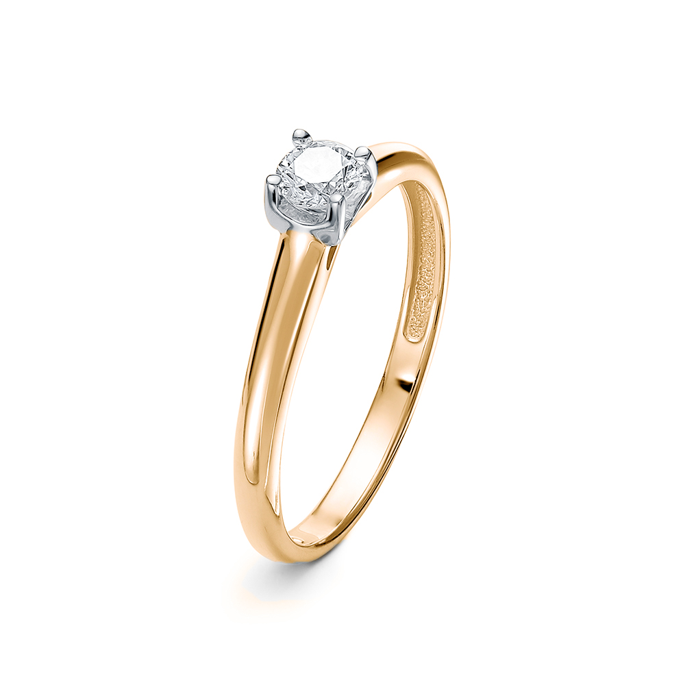 Помолвочное кольцо из красного золота 585 пробы украшено вставкой из белого золота с великолепным бриллиантом. Утонченное украшение изящно и привлекательно смотрится на руке, изысканный блеск драгоценного камня подчеркнет чувственность владелицы. Это украшение идеально для выражения самых искренних чувств, и прекрасно дополнит нежный образ вашей избранницы. Приобретайте кольцо в подарок по выгодным ценам в магазинах Мир Золота.
