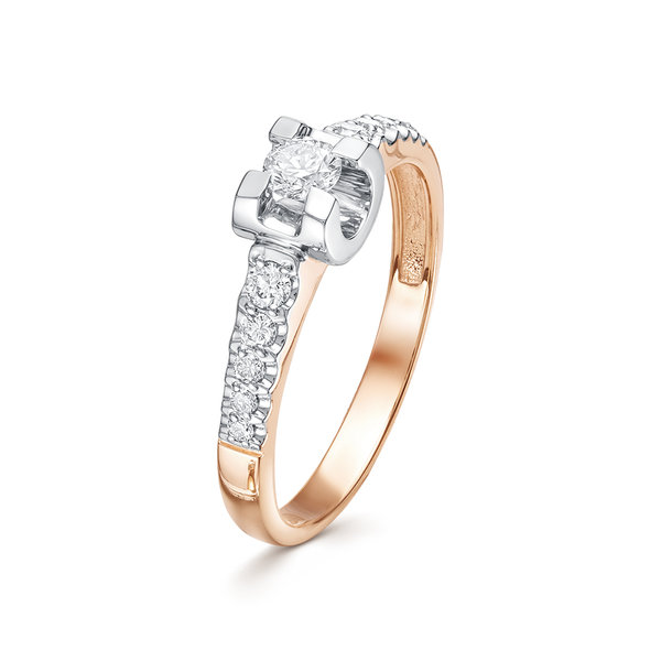 Блистательное кольцо из красного золота 585 пробы украшено 11 бриллиантами. Центральный камень и бриллиантовые дорожки эффектно подчеркнуты вставками из белого золота, дополняющих сияние драгоценных камней. Украшение удивляет своей изысканностью, красотой и сиянием. Приобретайте великолепное кольцо по выгодным ценам в магазинах Мир Золота.