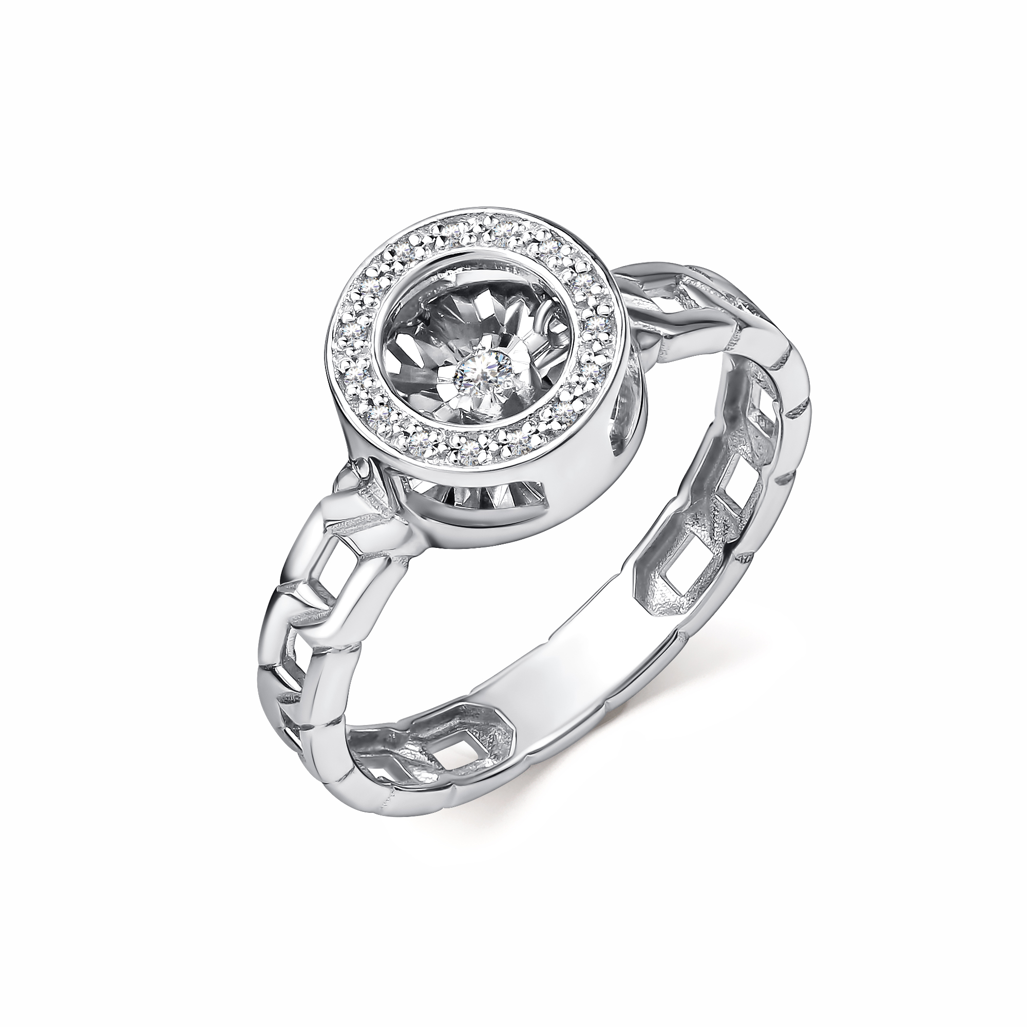 Женское кольцо из белого золота 585 пробы с драгоценными бриллиантами смотрится стильно и современно. Центральный бриллиант с подвижным креплением, подчеркнутый блеском алмазной грани, привлекает внимание и завораживает своим мерцающим сиянием. Приобретайте актуальное украшение для своей коллекции или в подарок по привлекательной цене в магазинах Мир Золота.