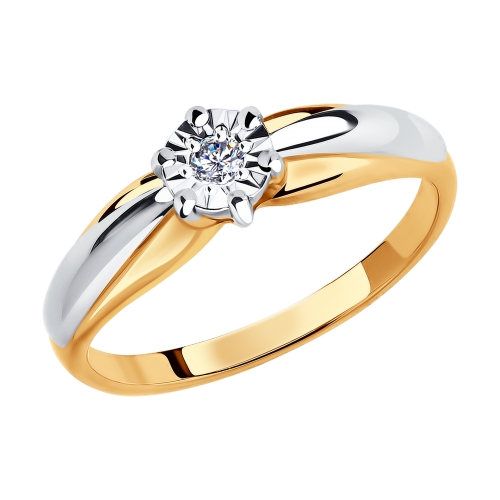 Кольцо из красного и белого золота с бриллиантом