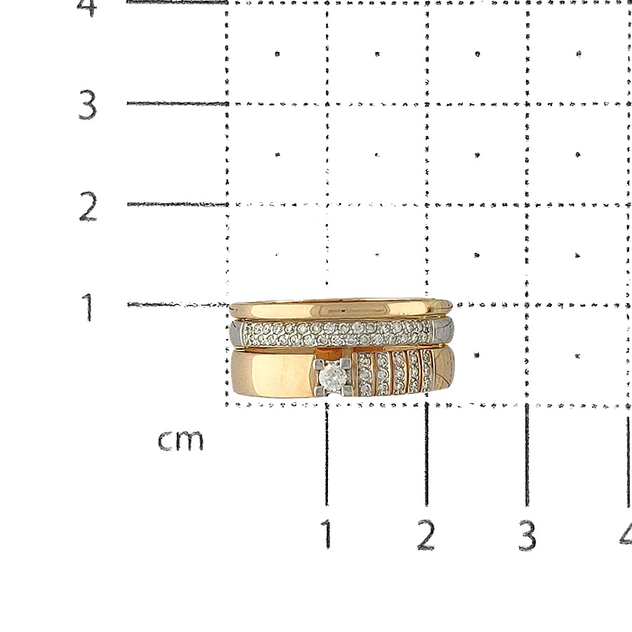 Эффектное кольцо из красного и белого золота 585 пробы с бриллиантами придется по вкусу любительницам крупных ювелирных украшений. Роскошное кольцо оригинального ювелирного дизайна покоряет своей красотой и ослепительным блеском драгоценных камней, и станет великолепным завершением женственного образа. Приобретайте кольцо в качестве подарка по привлекательной цене в магазинах Мир Золота.