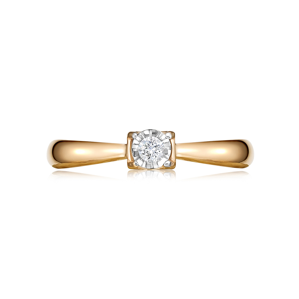 Помолвочное кольцо из красного золота 585 пробы с натуральным бриллиантом, выполненное в элегантном дизайне, станет символичным подарком и подчеркнет романтичность момента. Теплый оттенок благородного золота гармонично дополняет центральный бриллиант традиционной формы огранки, который приковывает внимание своим изысканным блеском. Приобретайте кольцо по выгодной цене в магазинах Мир Золота.