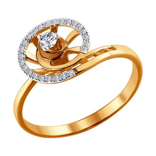 Эффектное кольцо в оригинальном дизайне из красного 585 пробы с бриллиантами. Великолепное кольцо, украшенное блеском 26 бриллиантов роскошно дополнит яркие и праздничные образы, и точно не останется незамеченным, приковывая к себе восхищенные взгляды. Приобретайте замечательное кольцо по выгодным ценам в магазинах Мир Золота.