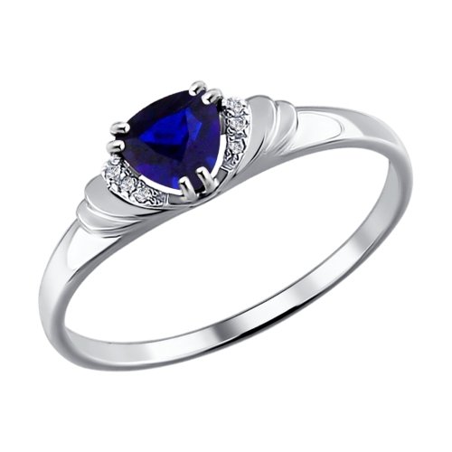 Классическое кольцо изящного дизайна из белого золота 585 пробы с корундом и бриллиантами. Корунд необычной формы огранки Триллион обрамляют бриллиантовые вставки из прозрачных драгоценных камней. Стильное украшение из благородного золота сделает ваш образ изящнее и элегантнее. Приобретайте прекрасное кольцо по выгодным ценам в магазинах Мир Золота.
