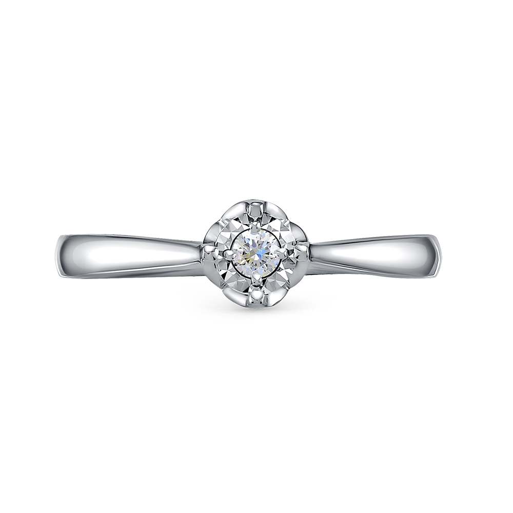 Симпатичное кольцо с бриллиантом выполнено белого золота 585 пробы в классическом стиле. Изящная вставка эффектно обрамляет сияющий прозрачный бриллиант. Красивое универсальное украшение подчеркнет женственность образа и станет великолепным завершающим штрихом. Приобретайте прекрасное кольцо по выгодным ценам в магазинах Мир Золота.