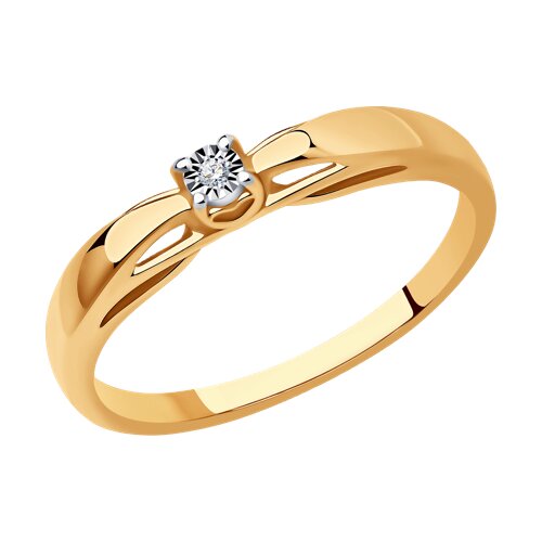 Нежное изящное кольцо из красного золота 585 пробы с бриллиантом. Идеальный вариант для подарка и помолвочного кольца. Лаконичное украшение хорошо комбинировать с любыми другими аксессуарами. Кольцо станет прекрасным дополнением к повседневному образу и к праздничному наряду. Приобретайте универсальное кольцо выгодно в магазинах Мир Золота.