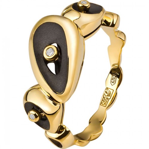 Интересные овальные формы кольца из желтого золота с сияющими бриллиантами приковывают к себе восторженные взгляды. Такое украшение невозможно не заметить - это уникальная авторская работа, которая выделяется среди других. В основе современного дизайна лежит идея зарождения жизни с маленькой клетки. Блеск драгоценных камней подчеркнут особенно выгодно, благодаря эффекту чернения желтого золота. Эффектное кольцо станет заметным акцентом в стильном образе.