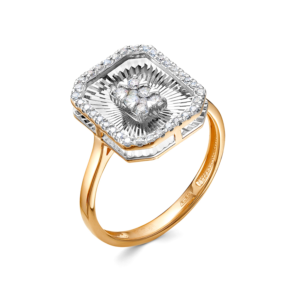 Кольцо из красного и белого золота 585 пробы с россыпью сверкающих бриллиантов покоряет с первого взгляда. Блистательное украшение с роскошным сиянием драгоценных камней, подчеркнутых блеском алмазной грани, станет великолепным дополнением женского образа. Приобретайте кольцо в подарок по привлекательной цене в магазинах Мир Золота.
