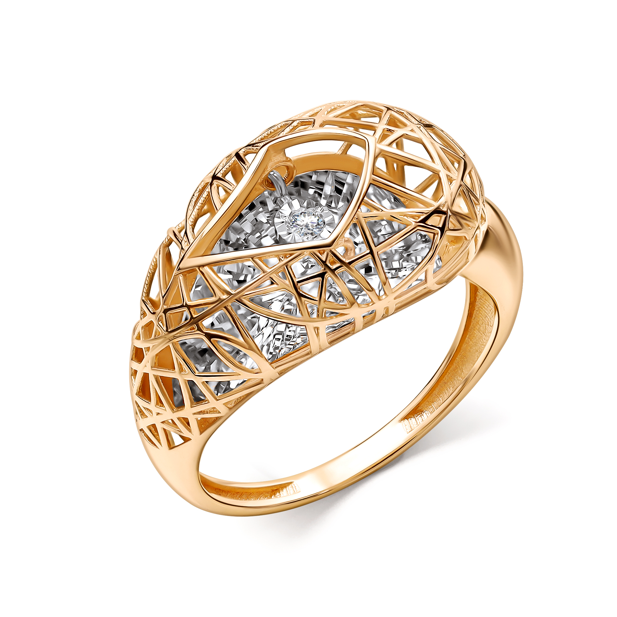 Объёмное золотое кольцо 585 пробы покоряет внимание выразительной формой и особым креплением драгоценного камня. Яркий бриллиант слегка покачивается при малейшем движении руки, вызывая завораживающую игру света. Красивое сочетание цвета золота и блеска камня придает украшению особую уникальность и очарование. Это кольцо станет шикарным дополнением образа и отличным способом выразить любовь и страсть к прекрасному.