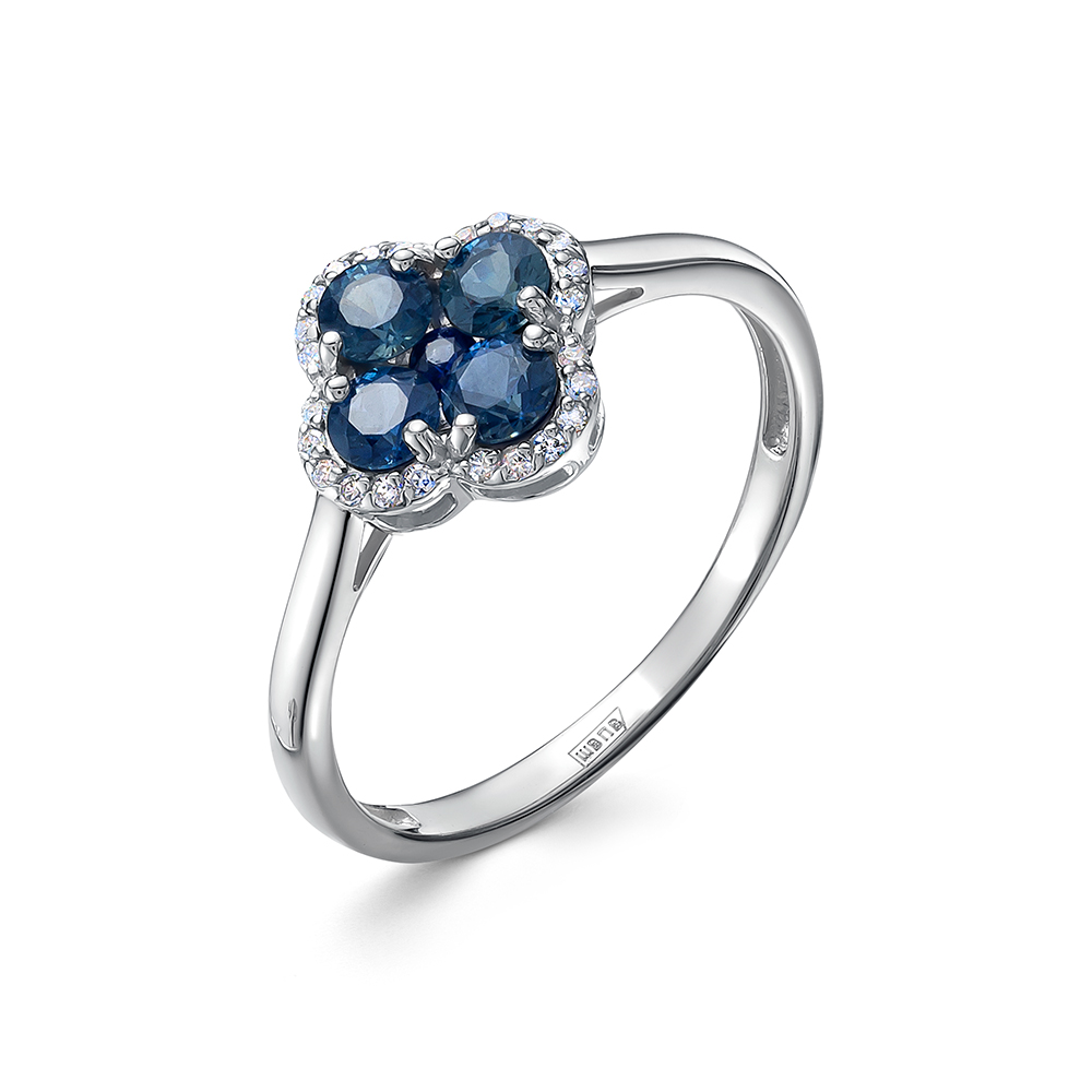 Милое изящное кольцо из белого золота 585 пробы, украшенное сапфирами и бриллиантами. Флористический стиль кольца подчеркнут синими сапфирами круглой огранки в окружении классических прозрачных бриллиантов. Притягательное украшение покорит вас своим сиянием и игрой света, и придаст образу шарма и очарования. Приобретайте очаровательное украшение по выгодным ценам в магазинах Мир Золота.