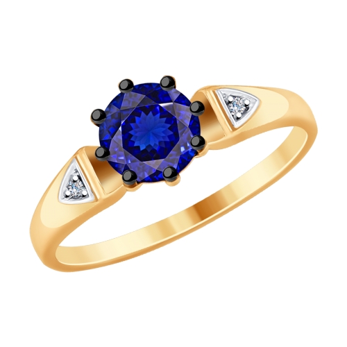 Замечательное кольцо в классическом стиле из красного золота 585 пробы с корундом и бриллиантами. Яркий синий корунд и вставки из белого золота со сверкающими бриллиантами эффектно сочетаются в данном украшении. Элегантное кольцо отлично подчеркнет индивидуальный и стильный образ владелицы. Приобретайте прекрасное украшение по выгодным ценам в магазинах Мир Золота.