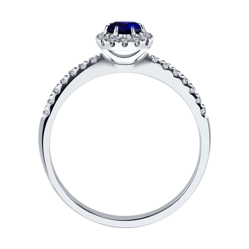 Очень красивое изящное кольцо из белого золота 585 пробы с натуральным сапфиром и бриллиантами. Блистательное кольцо с ярким акцентом синего круглого сапфира, дополненное бриллиантовыми вставками из 28 прозрачных сверкающих камней, несомненно привлечет восхищенные взгляды. Приобретайте очень привлекательное украшение по выгодным ценам в магазинах Мир Золота.