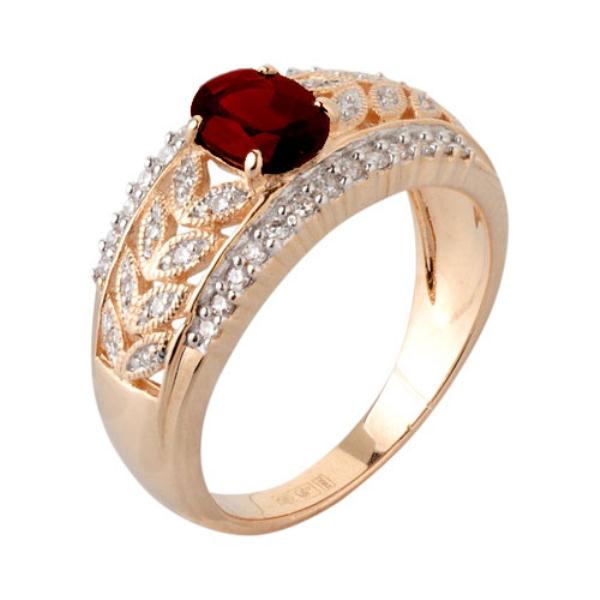 Кольцо из красного золота с гранатом и бриллиантами