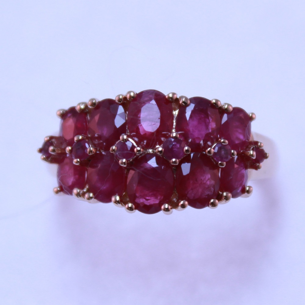 Великолепное кольцо из красного золота 585 пробы с россыпью натуральных рубинов подчеркнет изысканный стиль владелицы. Эффектное украшение с благородным сиянием драгоценных камней, несомненно, привлечет внимание окружающих, и добавит роскошного блеска в неповторимый вечерний образ. Приобретайте ювелирное украшение в подарок по выгодным ценам в магазинах Мир Золота.