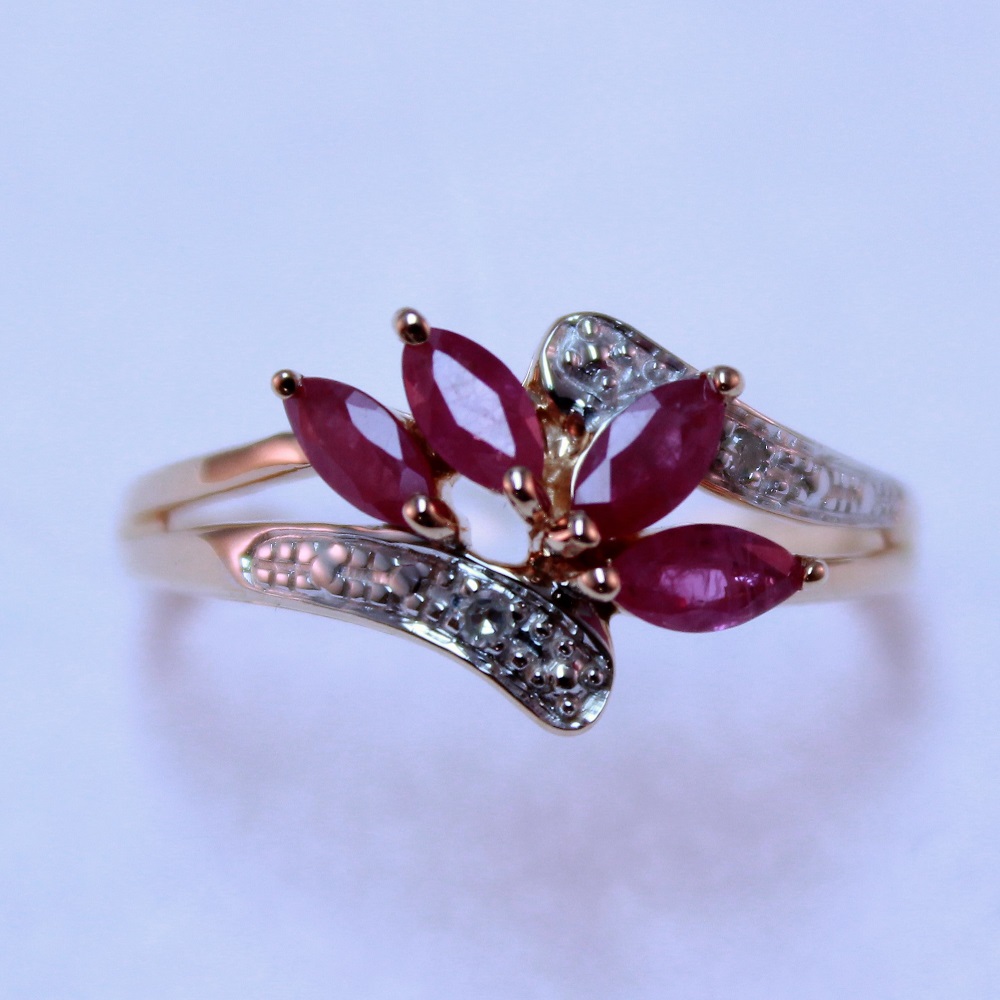 —Кольцо из красного золота с рубинами и бриллиантами