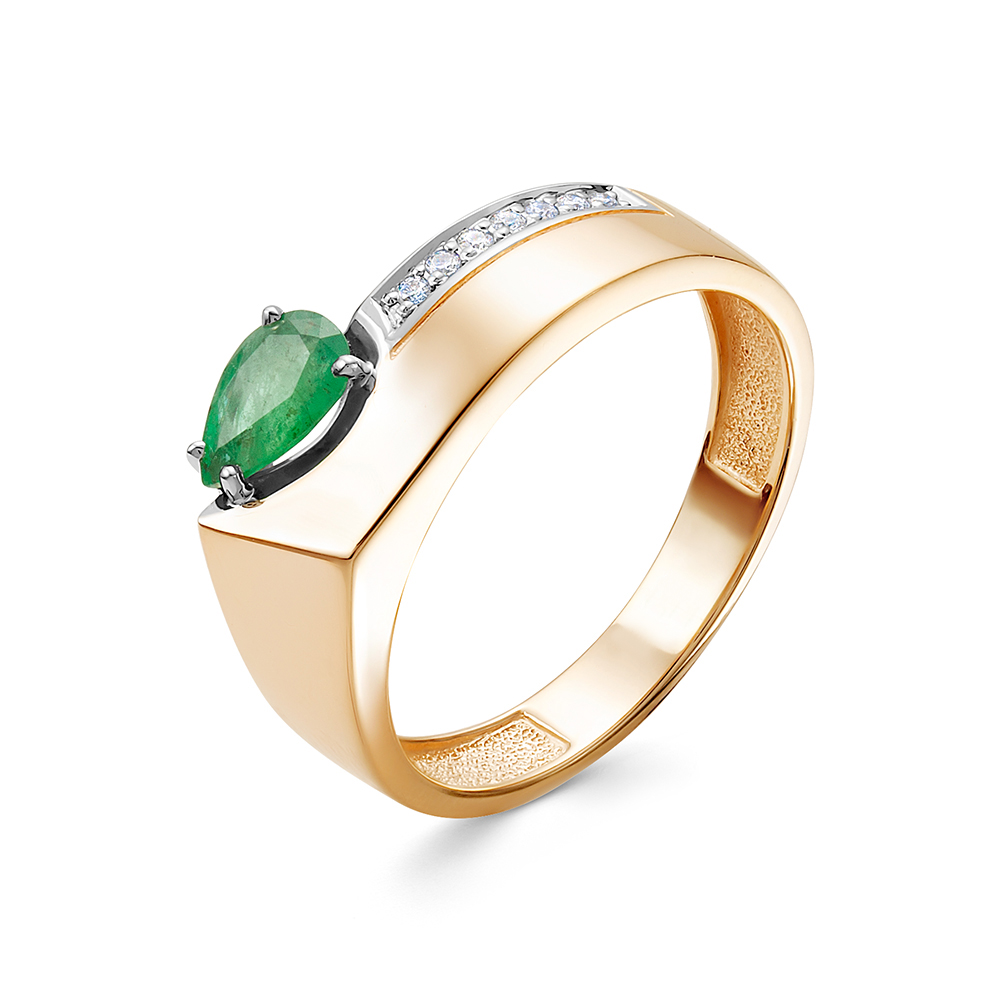 —Кольцо из красного золота с изумрудом и бриллиантами