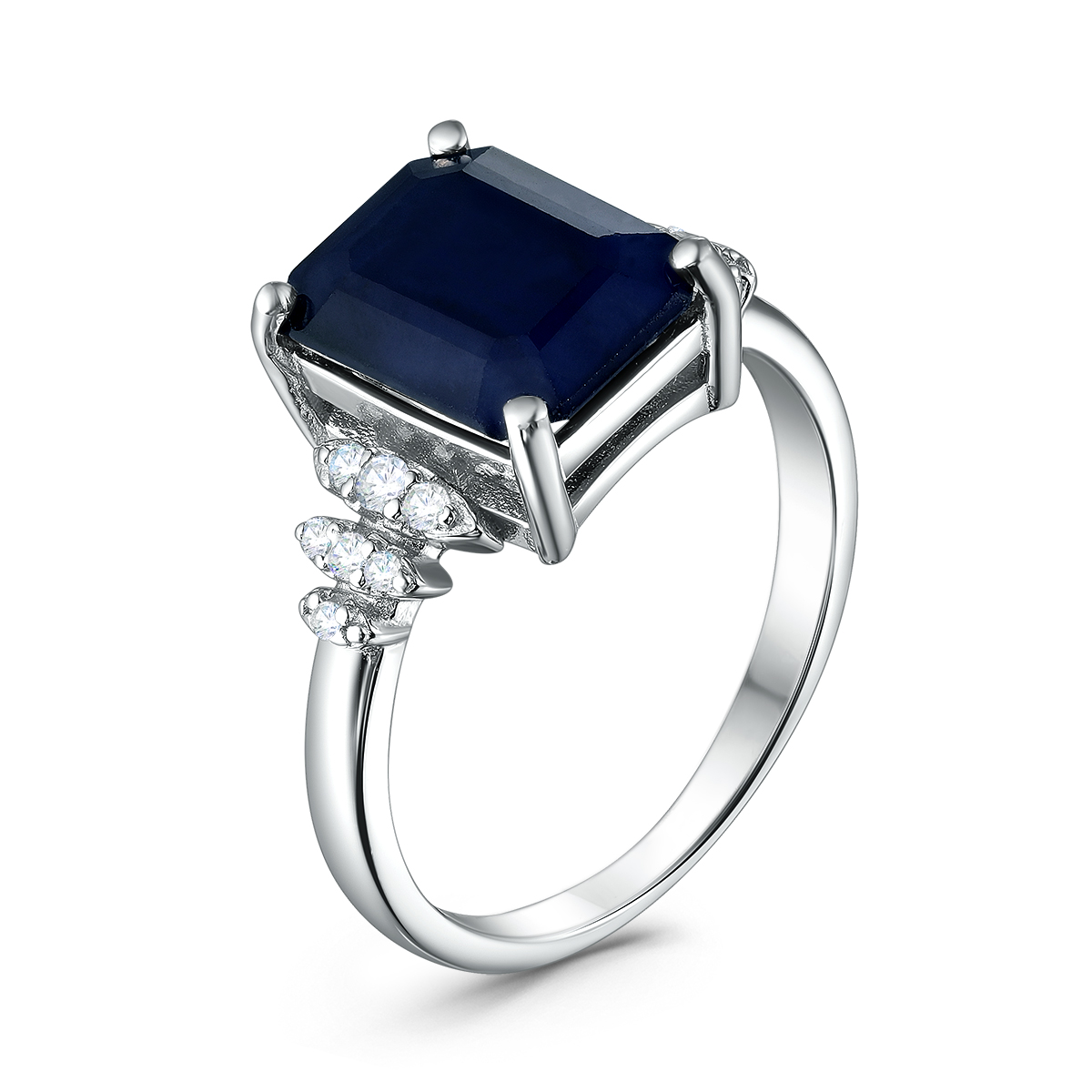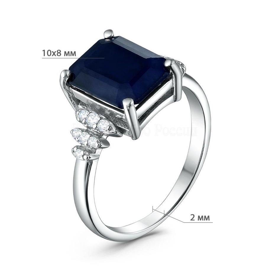 Привлекательное кольцо выполнено из родированного серебра 925 пробы с эффектным синим сапфиром и сияющими вставками с кубическим цирконием. Яркое и стильное украшение с завораживающим блеском камней привлекает внимание, и отлично впишется в современные образы, подчеркнув женственность обладательницы. Приобретайте кольцо по выгодной цене в магазинах Мир Золота.