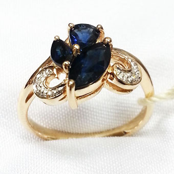Кольцо из красного золота 585 пробы декорировано притягательными сапфирами и сияющими бриллиантами. Очаровательный дизайн кольца с изысканным блеском драгоценных камней притягивает внимание, и будет лучшим дополнением утонченного женственного образа. Приобретайте кольцо по выгодным ценам в магазинах Мир Золота.