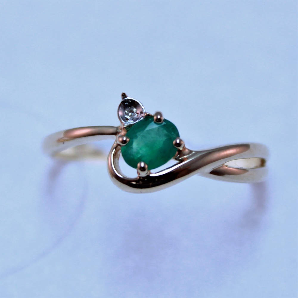 —Кольцо из красного золота с изумрудом и бриллиантом