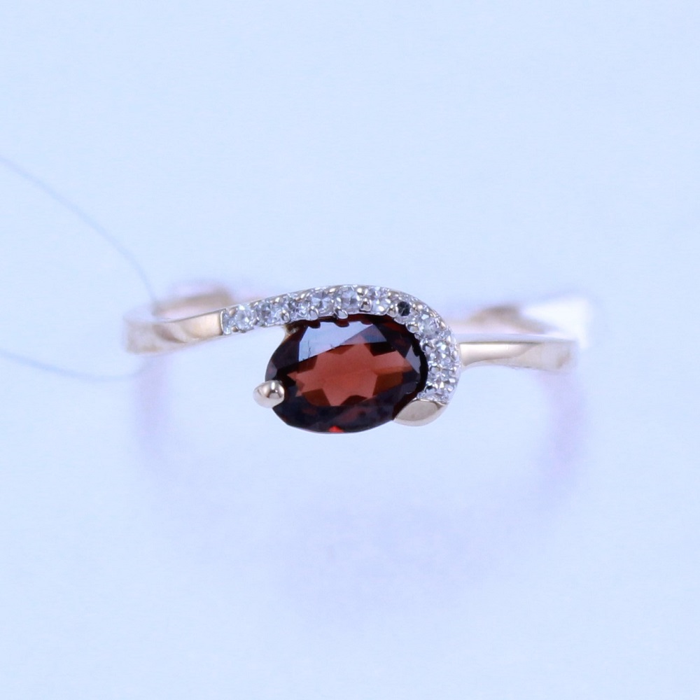 Кольцо из красного золота с гранатом и бриллиантами