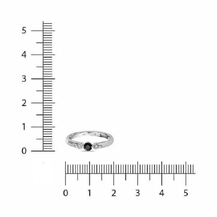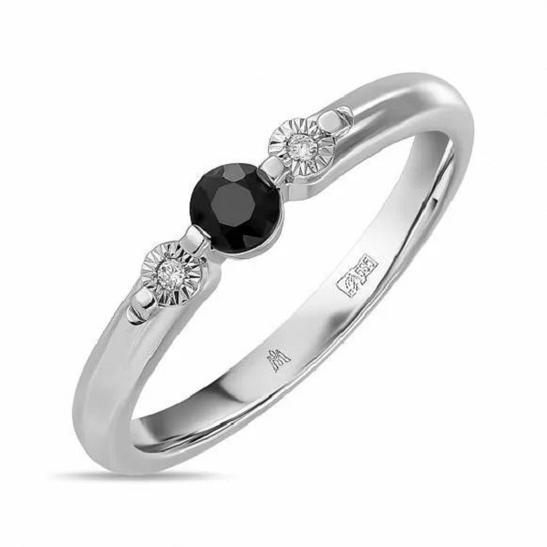 Элегантное кольцо выполнено из белого золота 585 пробы, украшено черным сапфиром и бриллиантами. Стильное кольцо, декорированное идеальным черным сапфиром круглой огранки и дополненное двумя вставками с прозрачными бриллиантами, станет изюминкой вашего образа. Украшение отлично подчеркнет классический повседневный и вечерний стиль. Приобретайте кольцо по выгодным ценам в магазинах Мир Золота.