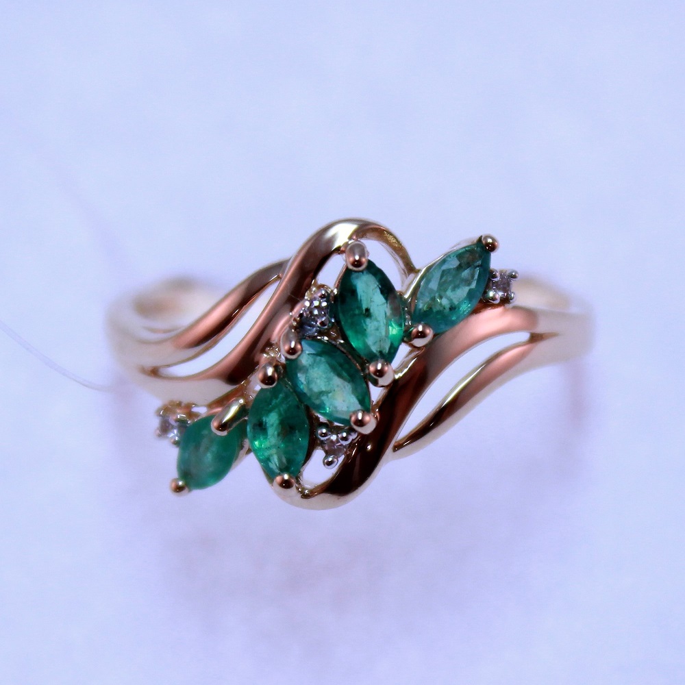 —Кольцо из красного золота с изумрудами и бриллиантами