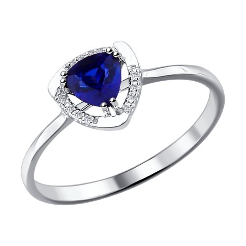 Нежное красивое кольцо из белого золота 585 пробы с синим корундом и бриллиантами. Корунд синего цвета огранки необычной формы триллион с превосходным блеском покоряет своей красотой и эффектностью. Декор дополняют изящные бриллиантовые дорожки. Очаровательное украшение придаст образу естественности и очарования. Приобретайте изящное кольцо по выгодным ценам в магазинах Мир Золота.