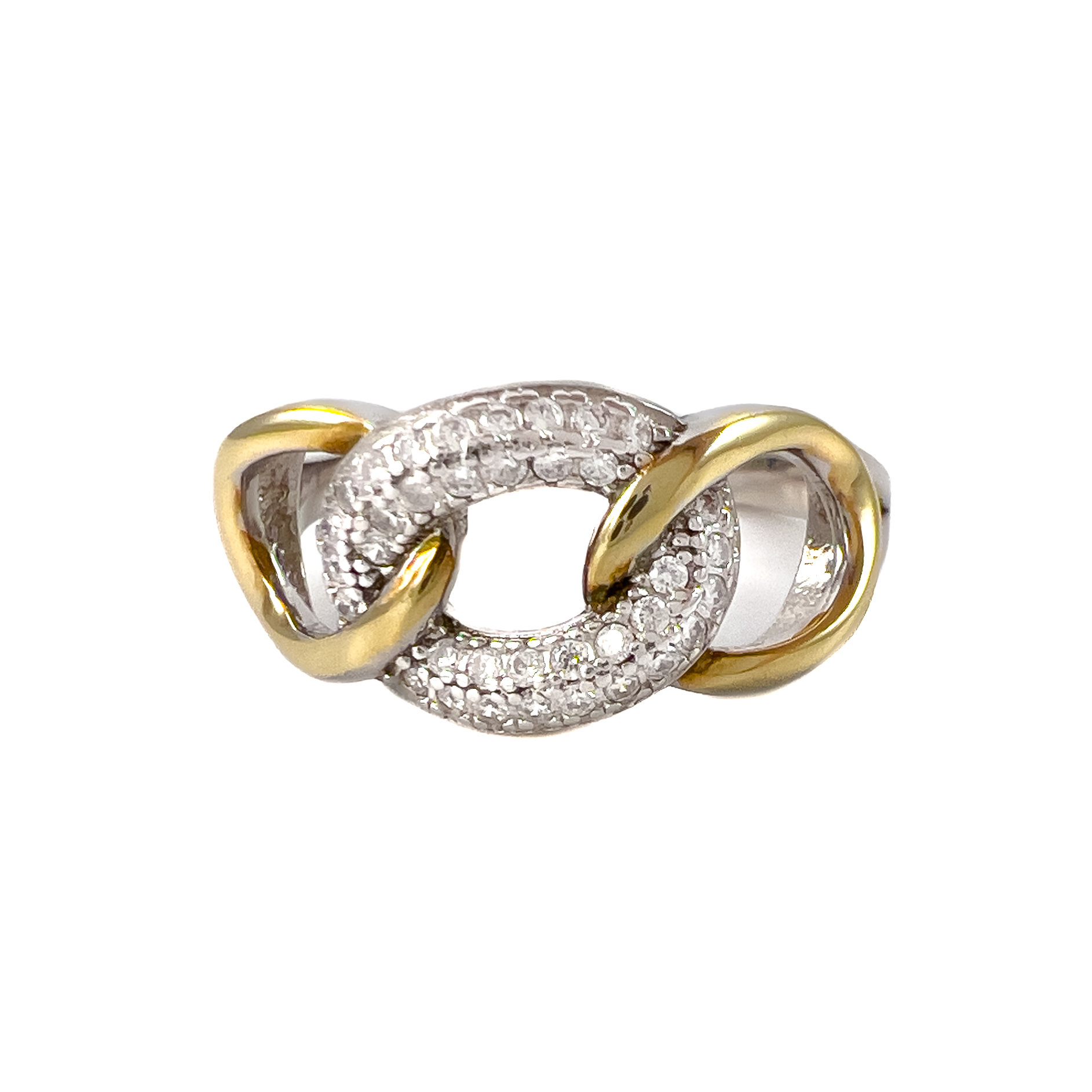 Трендовое женское ювелирное кольцо выполнено из серебра 925 пробы с позолотой. Оригинальная форма украшения в виде цепи с крупными звеньями, увенчанная манящим блеском россыпи фианитов, излучает природную красоту, притягивая восхищенные взгляды. Украшение представлено ювелирным брендом VERONA. Купите роскошное кольцо по привлекательной цене в магазинах Мир Золота.
