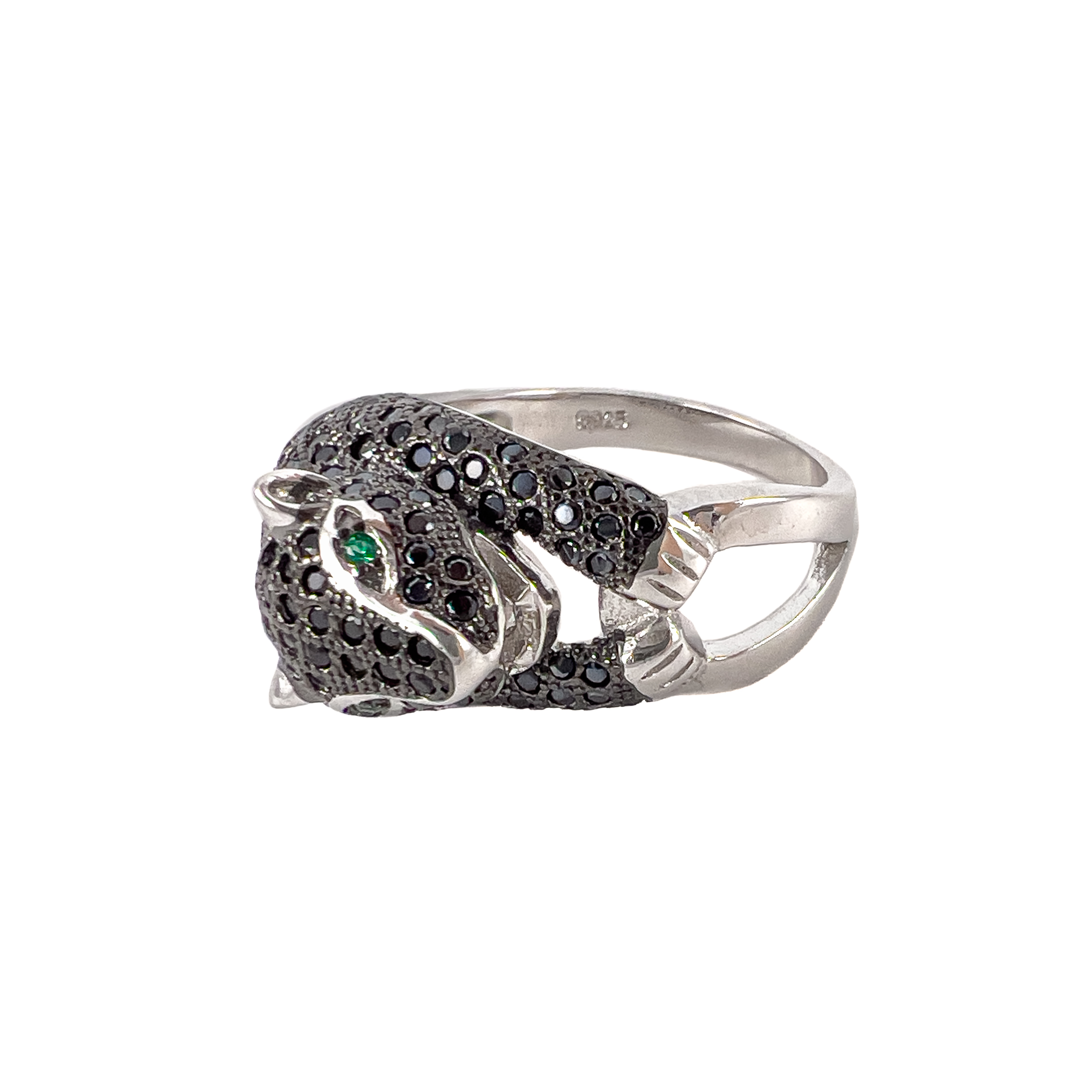—Кольцо из серебра в виде головы пантеры с цирконом
