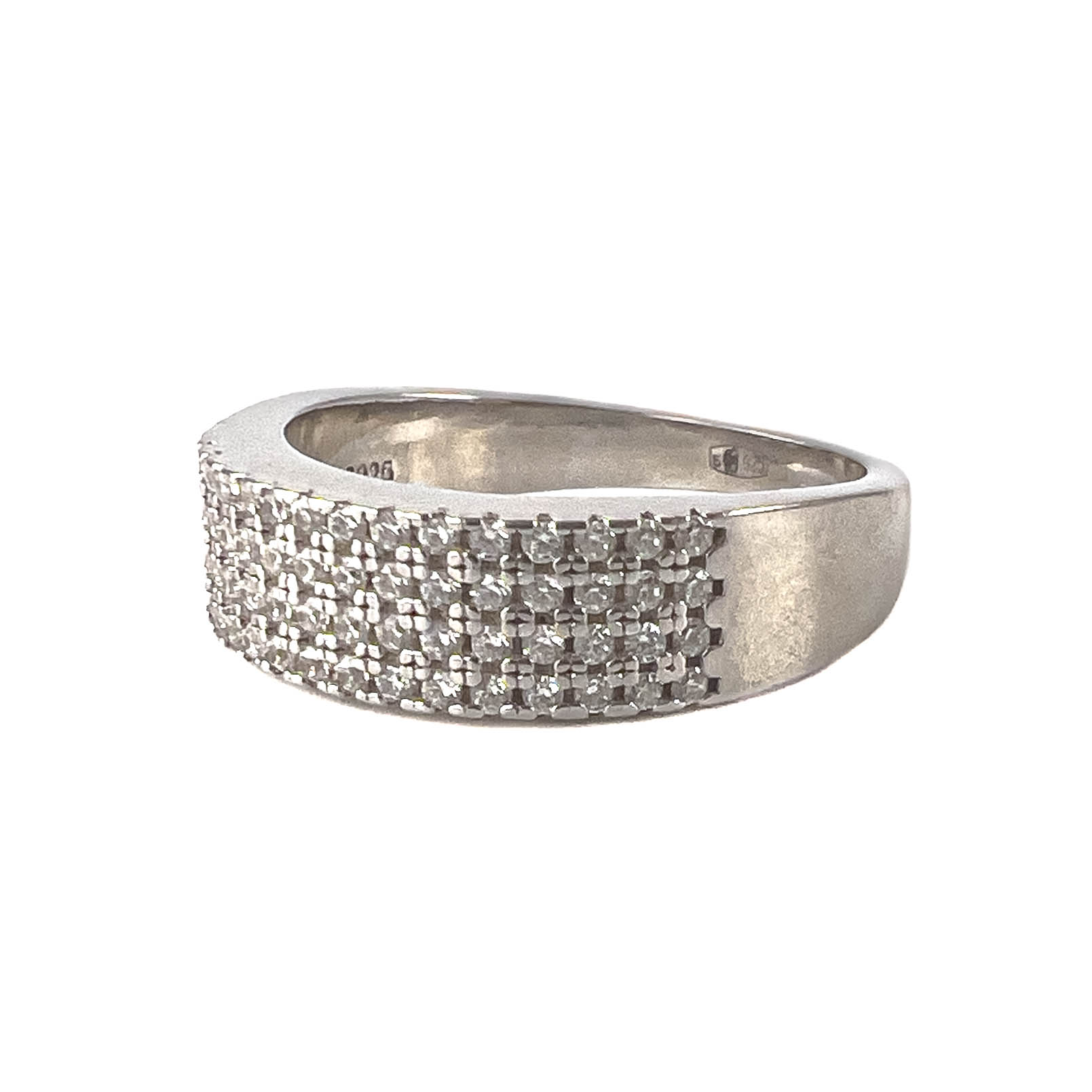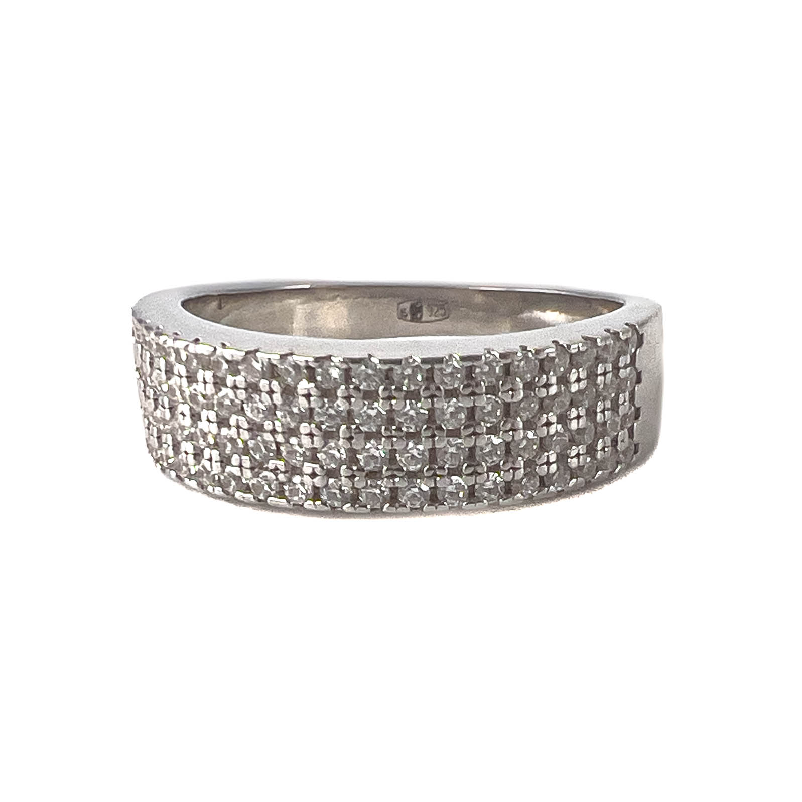 Выразительное широкое кольцо из серебра 925 пробы в классическом стиле, украшенное паве из прозрачных фианитов, станет идеальным продолжением счастливого образа. Завораживающий блеск камней превращает кольцо в изысканное украшение, достойное внимания. Купите свое серебряное кольцо в ювелирных магазинах Мир Золота.