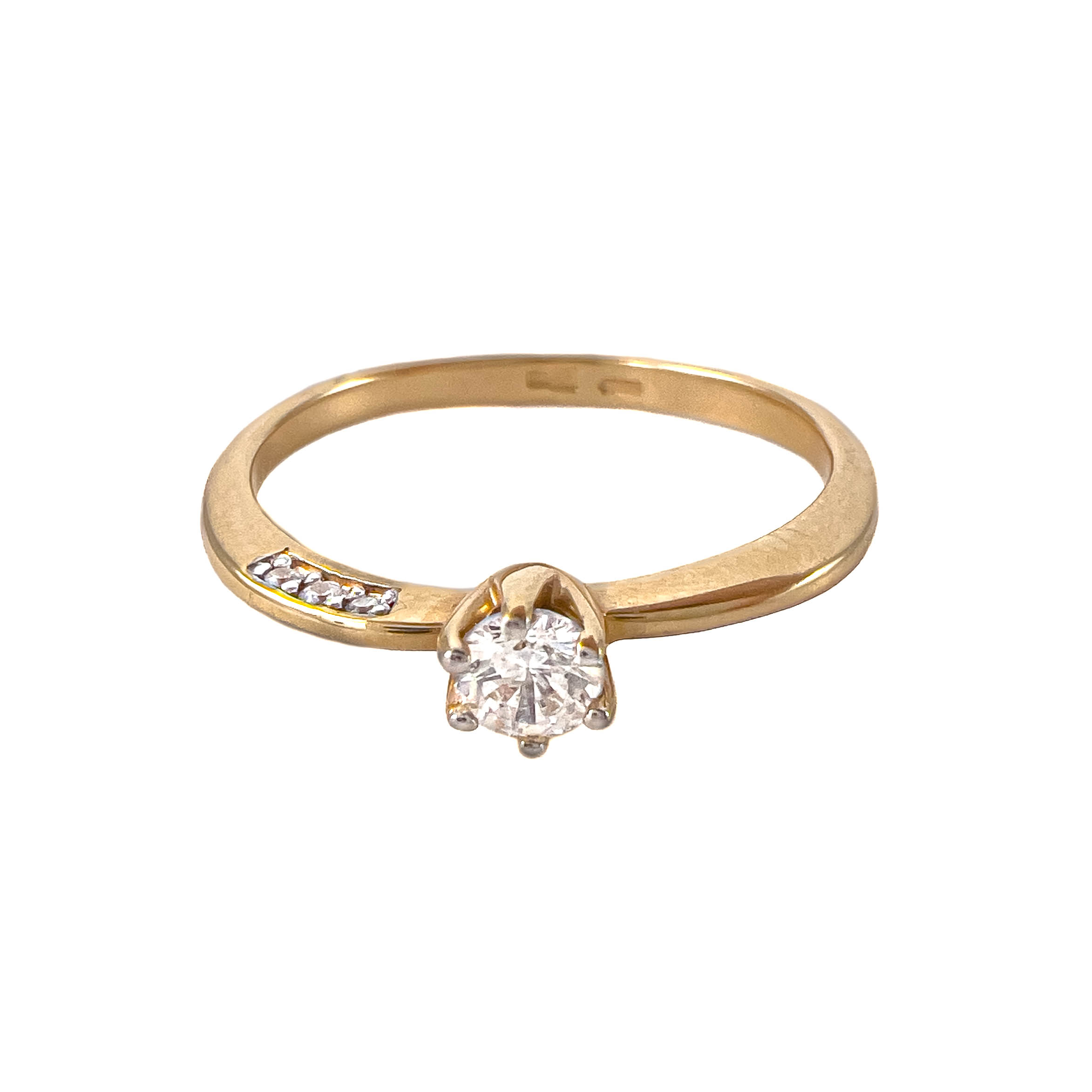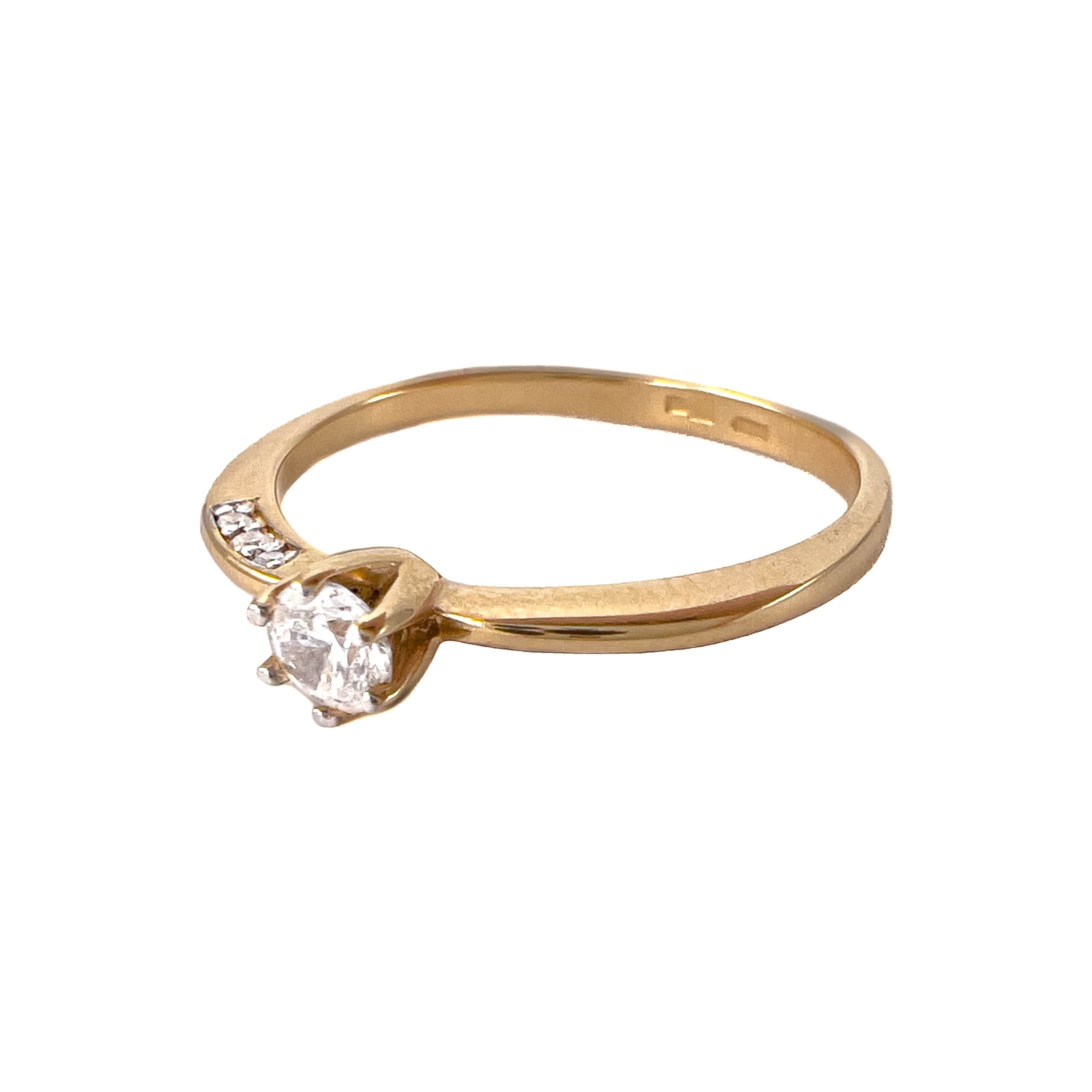 Чувственное кольцо удивительной красоты из красного золота 585 пробы - беспроигрышный вариант для завершения романтичного образа. Впечатляющее сияние солирующего фианита, высокий каст и украшенная шинка ещё шестью фианитами - драгоценное украшение хранит секреты, о которых будет знать только его обладательница. Кольцо ювелирного бренда Золотая Подкова исполнено красотой и не оставит равнодушными ценителей классического стиля в ювелирном искусстве.