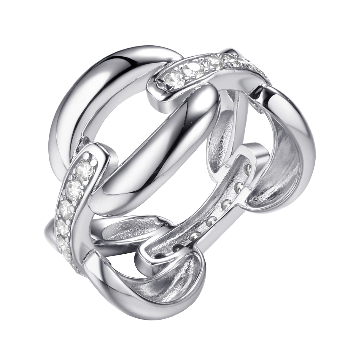 Эффектное серебряное кольцо из коллекции Chain ювелирного бренда Fresh в виде звеньев цепи, украшенное сверкающими фианитами, подчеркнет ваше безупречное чувство стиля. Кольцо понравится любительницам заметных украшений и подчеркнет изысканность образа владелицы. Приобретайте ювелирное украшение для своей коллекции или в подарок по выгодной цене в магазинах Мир Золота.