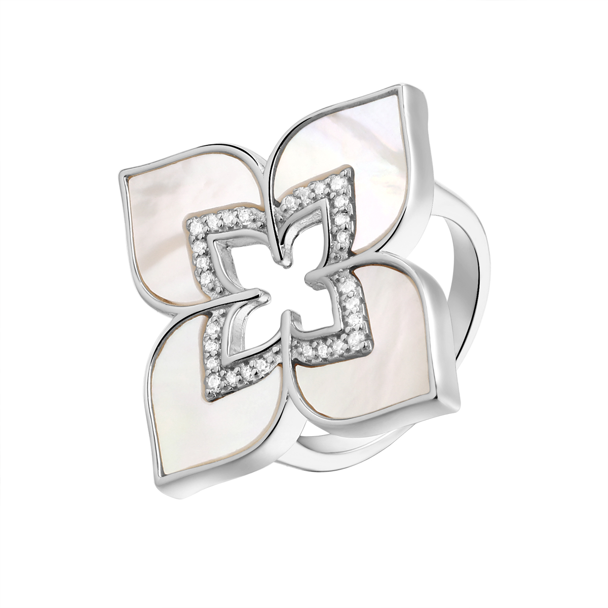 —Кольцо из серебра с перламутром и фианитами
