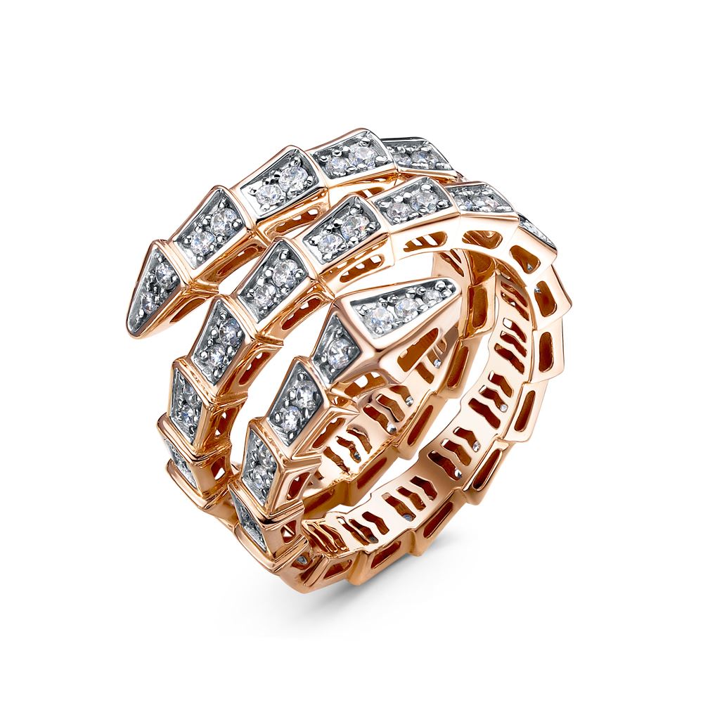 Изящное золотое кольцо напоминает подвижную змею, которая придает образу таинственность и загадочность. Безупречные линии красного металла, усыпанные прозрачными фианитами, следуют трендовым преображениям классических украшений с учетом современной моды. Купите эффектное женское кольцо по лучшей цене в магазинах Мир Золота.