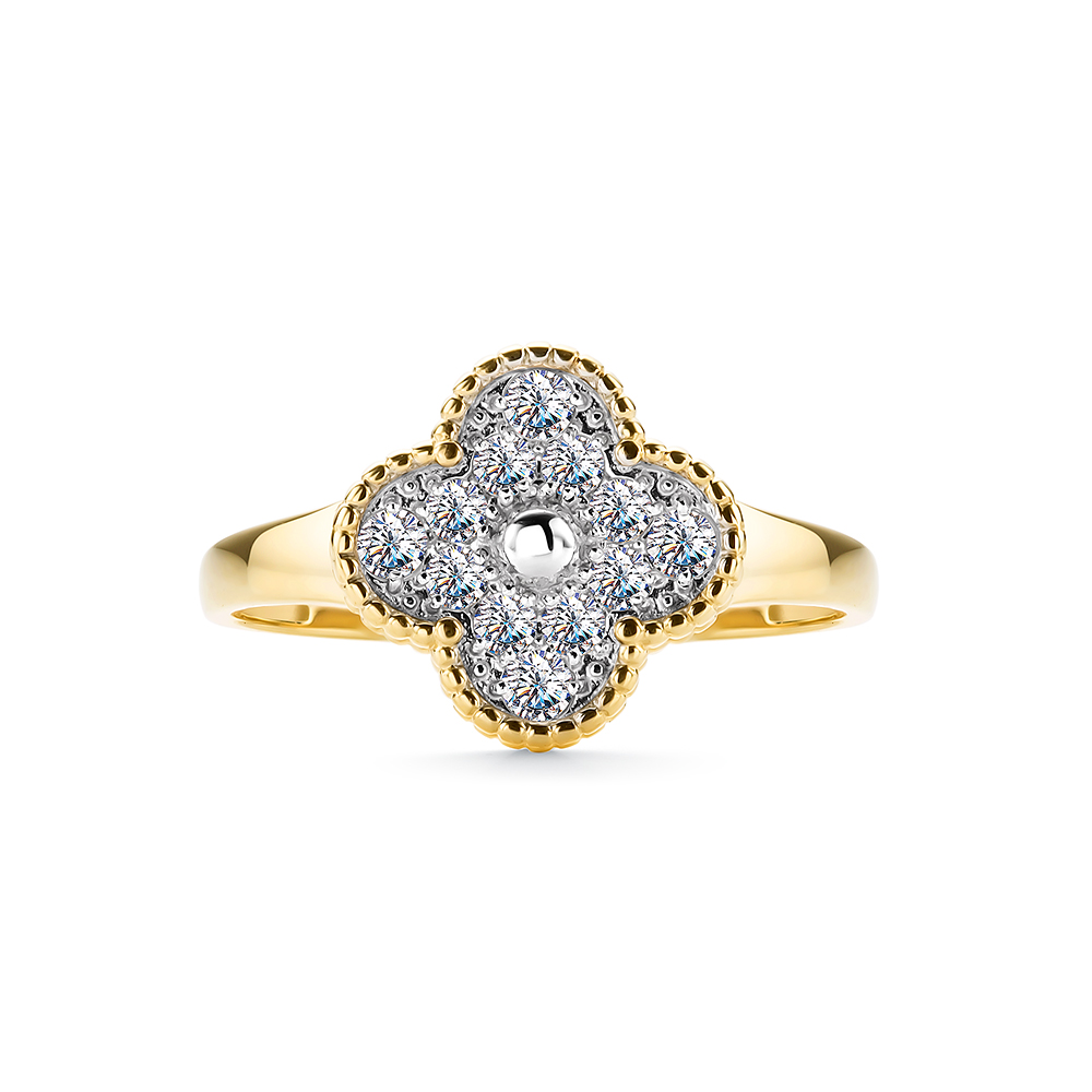 Кольцо из желтого золота 585 пробы с выразительной вставкой с прозрачными фианитами станет очаровательным акцентом повседневного образа. Флористический дизайн с кристальным сиянием камней позволит создать нежный романтичный образ, и подчеркнет красоту и женственность обладательницы. Приобретайте ювелирное кольцо для себя или в подарок по выгодным ценам в магазинах Мир Золота.