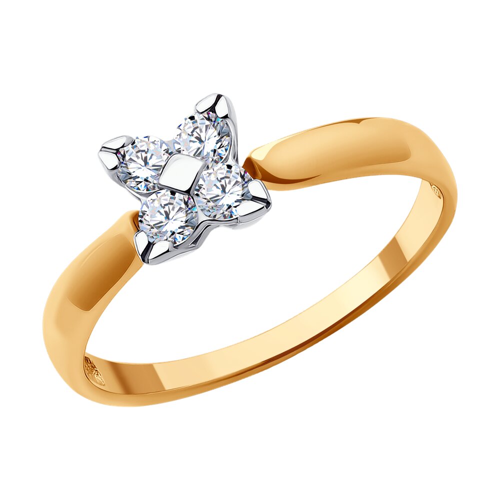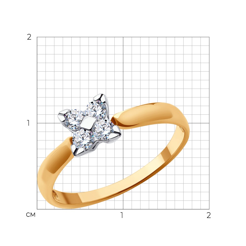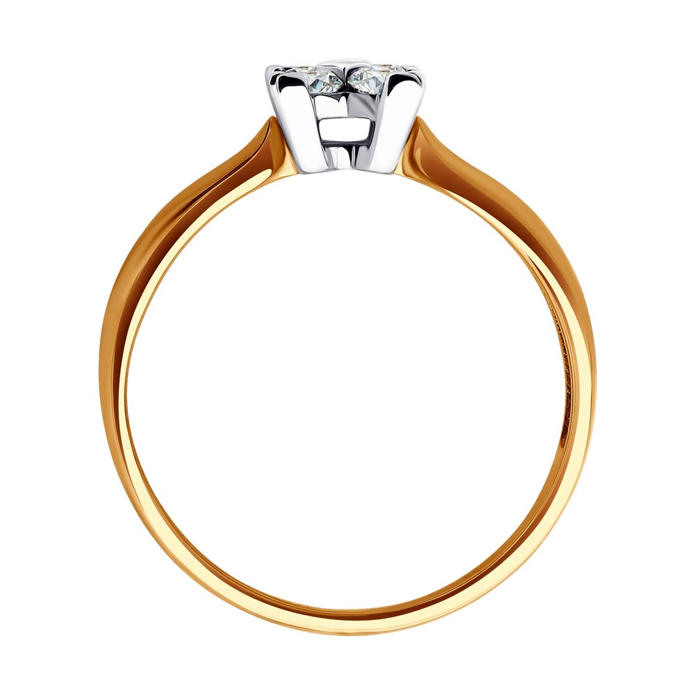 Кольцо из красного золота 585 пробы с эффектной вставкой из белого золота с прозрачными фианитами изящно смотрится на руке, и подчеркнет красоту и женственность обладательницы. Привлекательный дизайн с ярким блеском кристальных фианитов идеально дополнит нежный утонченный образ. Приобретайте очаровательное украшение в подарок по выгодной цене в магазинах Мир Золота.